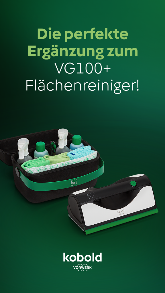 Mit dem neuen CleanKit von Vorwerk wird Sauberkeit jetzt noch einfacher und effektiver. Es ist die perfekte Ergänzung zum VG100 Flächenreiniger – und sorgt für streifenfreien Glanz auf Fenstern, Spiegeln und glatten Oberflächen.